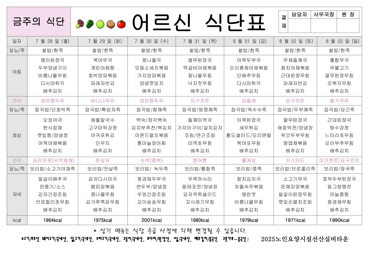 7월 5주 식단표 올려드립니다. 페이지 정보 작성자선산실버타운 등록일 2025-07-25 00:00 조회401 본문 7월 5주 식단표 올려드립니다. 목록 이전글8월1주 식단표 올려드립니다. 25.08.01 다음글7월 4주 식단표 올려드립니다. 25.07.18
