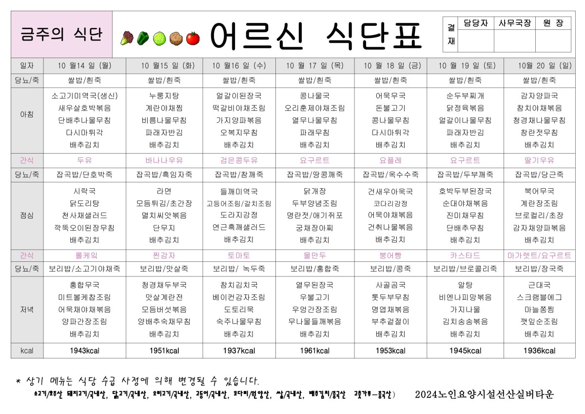 10월 3주 식단표 올려드립니다. 페이지 정보 작성자선산실버타운 등록일 2024-10-11 00:00 조회1,191 본문 10월 3주 식단표 올려드립니다. 목록 이전글10월 4주 식단표 올려드립니다. 24.10.18 다음글10월 2주 식단표 올려드립니다. 24.10.04