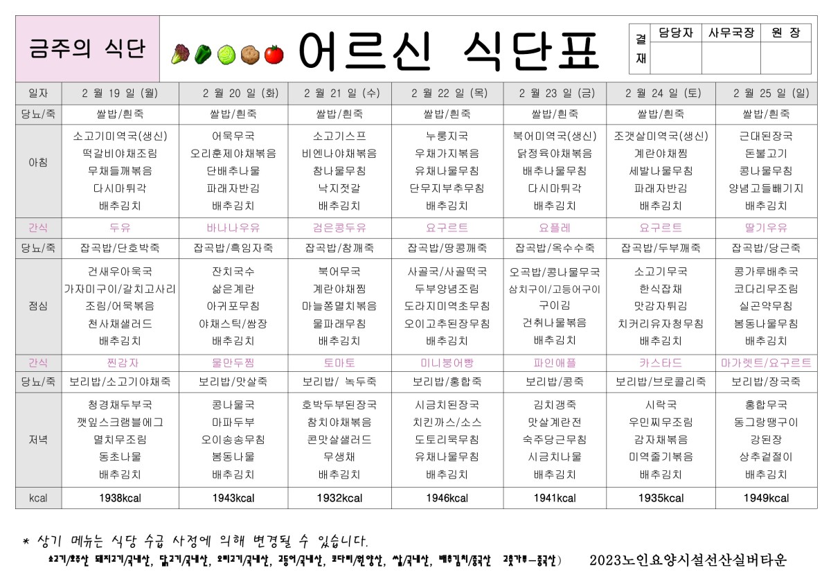 2월 4주 식단표 올려드립니다. 페이지 정보 작성자선산실버타운 등록일 2024-02-16 00:00 조회932 본문 2월 4주 식단표 올려드립니다. 목록 이전글2월 5주 식단표 올려드립니다. 24.02.23 다음글2월 3주 식단표 올려드립니다. 24.02.08