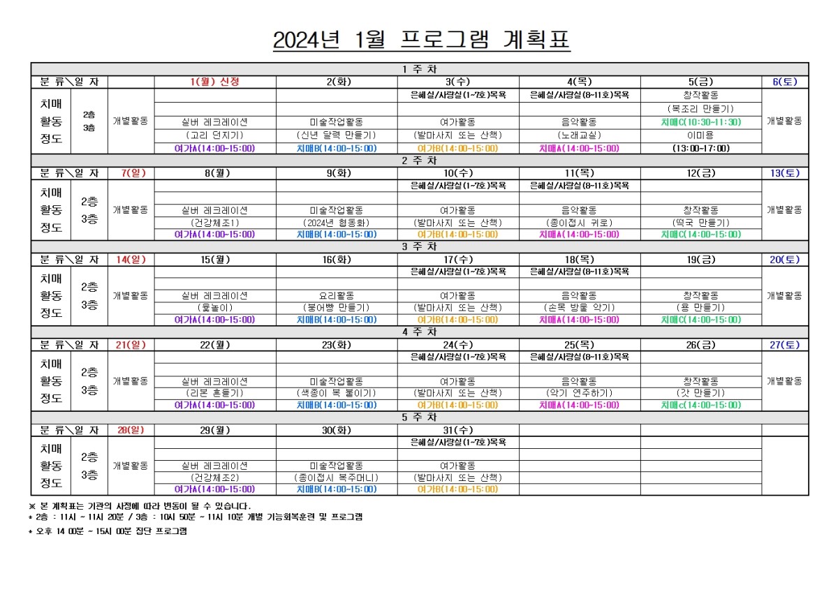 2024년 1월 프로그램 일정표