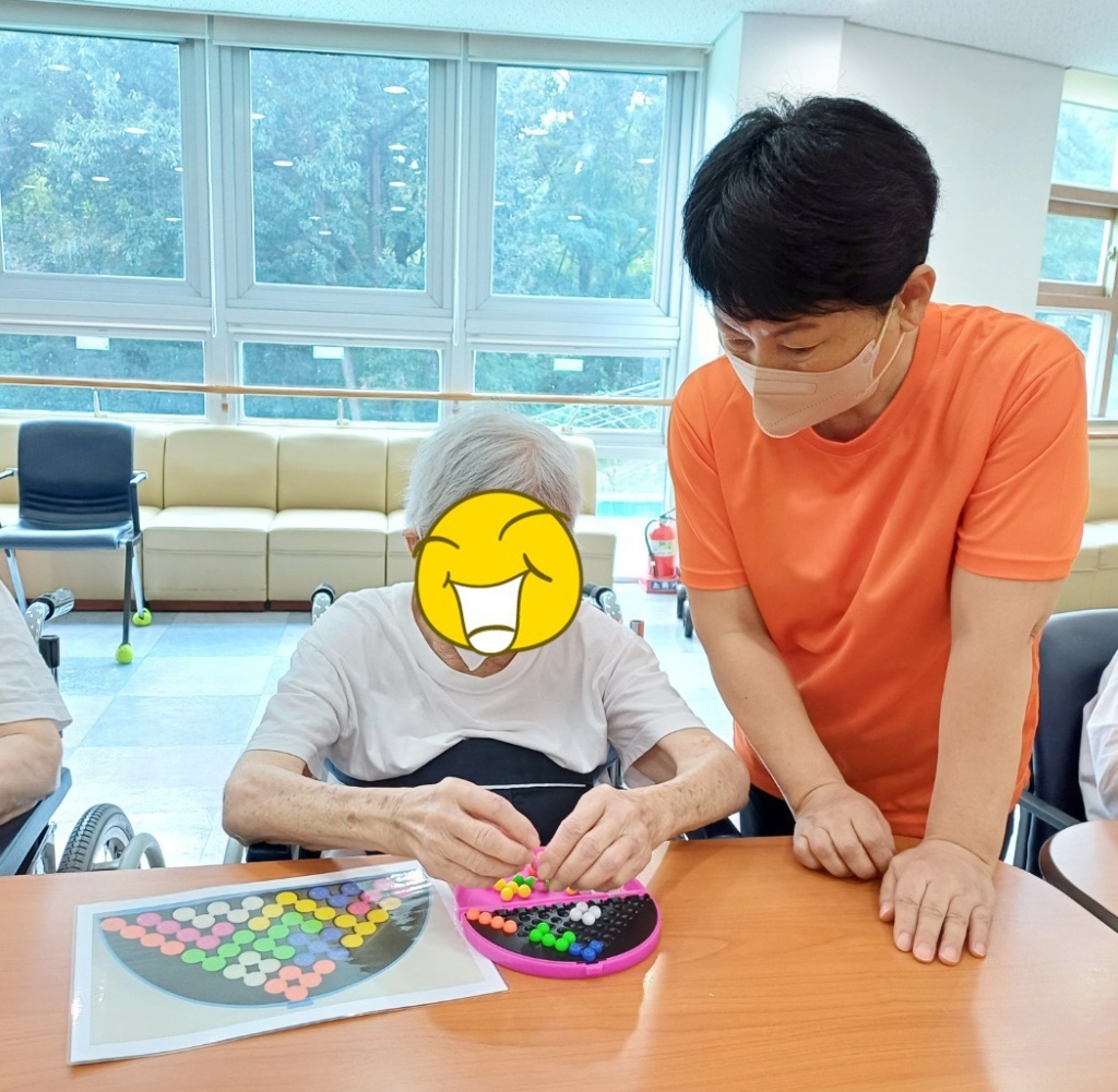 선산실버타운에서 어르신들의 무력감과 지루함을 좀더 해소하고, 인지향상으로 다양한 활동을 즐기시도록 프로그램을 구성하고 있습니다. 먼저 큰 폼폼이로 탐색을 하며 적응을 하신 후, 작은 구슬 퍼즐판으로 어르신들의 손가락 근육의 힘도 길러보고, 어렵지만 완성 후 성취감을 가져보시도록 준비해 드렸어요~~~ 울 어르신들~ 작은 구슬퍼즐판을 더듬더듬 하나씩 맞추시는 모습이 감동입니다^^/lg_e17255223133551_KakaoTalk_20240905_150337232_02.jpg)