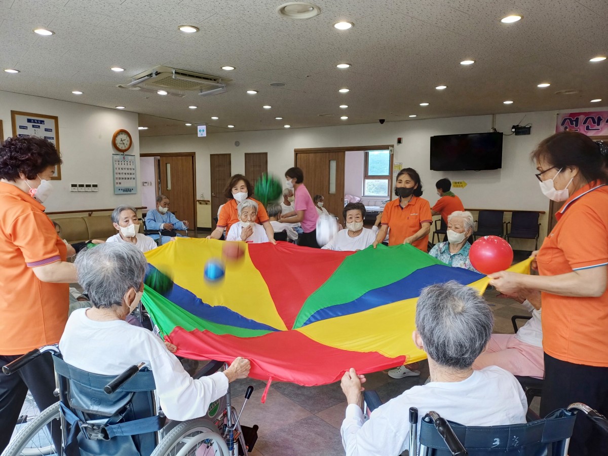 25년6월25일 파라슈트 프로그램(어르신들과 함께 즐겁고 재미 있는 오후 프로그램) 페이지 정보 작성자선산실버타운 등록일 2025-06-25 00:00 조회188 본문 25년6월25일 파라슈트 프로그램(어르신들과 함께 즐겁고 재미 있는 오후 프로그램) 목록 이전글25년7월1일 링체조하는 모습 25.07.01 다음글25년6월19일 롤리팝을 이용한 악기 (리듬에 맞춰서 어르신들과 함께 즐겁고 재미 있는 오후 프로그램) 25.06.19