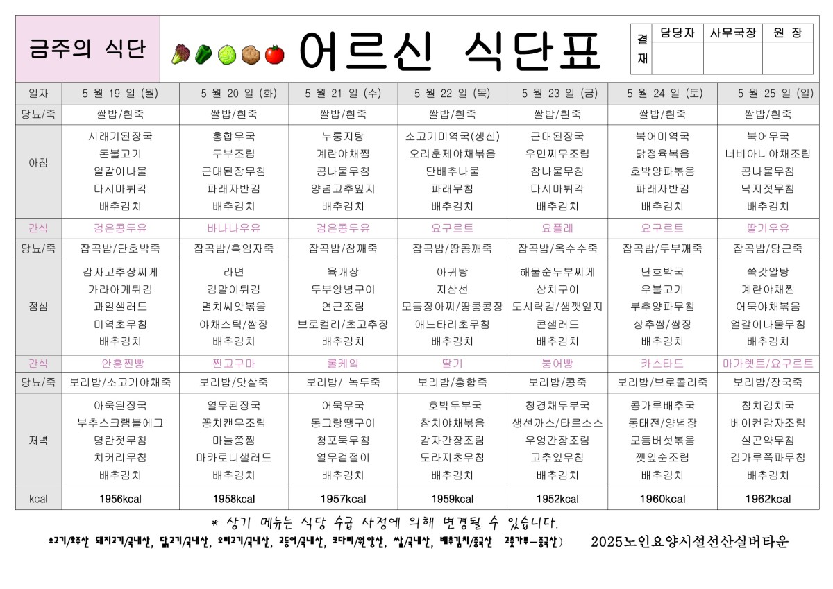 5월 4주 식단표 올려드립니다. 페이지 정보 작성자선산실버타운 등록일 2025-05-16 00:00 조회355 본문 5월 4주 식단표 올려드립니다. 목록 이전글5월 5일 식단표 올려드립니다. 25.05.23 다음글5월 3주 식단표 올려드립니다. 25.05.09