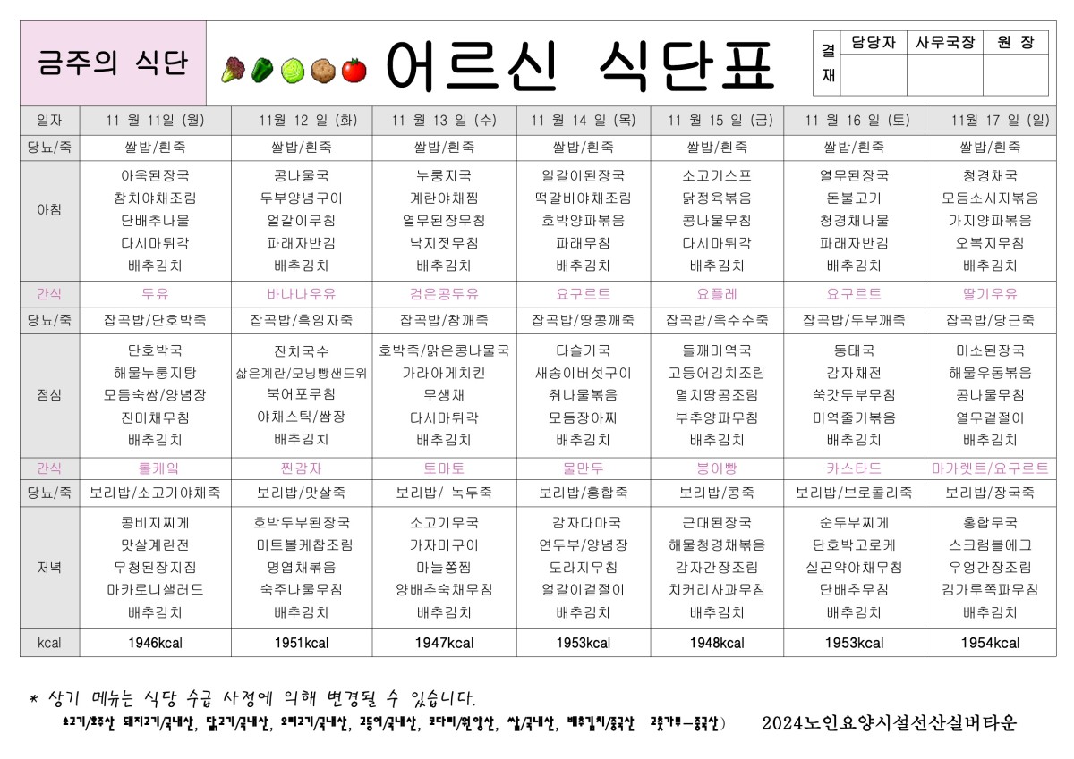 11월 2주 식단표 올려드립니다. 페이지 정보 작성자선산실버타운 등록일 2024-11-08 00:00 조회365 본문 11월 2주 식단표 올려드립니다. 목록 이전글11월 3주 식단표 올려드립니다. 24.11.15 다음글11월 1주 식단표 올려드립니다. 24.11.01