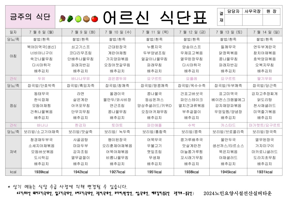 7월 2주 식단표 올려드립니다. 페이지 정보 작성자선산실버타운 등록일 2024-07-05 00:00 조회353 본문 7월 2주 식단표 올려드립니다. 목록 이전글7월 3주 식단표 올려드립니다. 24.07.12 다음글7월 1주 식단표 올려드립니다. 24.06.28